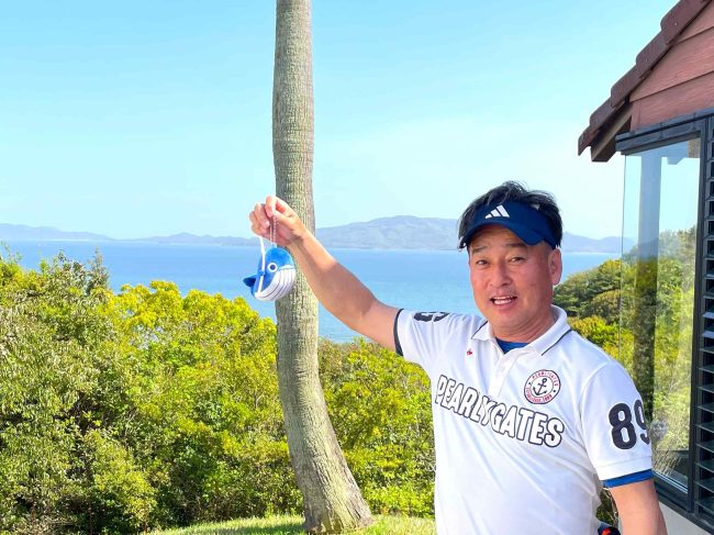 17番ホールティ奥にある展望台で小豆島をバックに📸