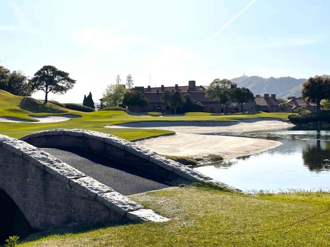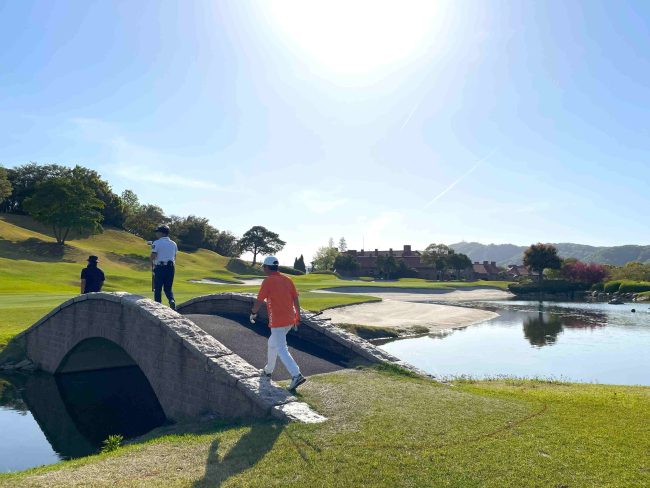 名物ブリッジを渡って18番グリーンへ🤩