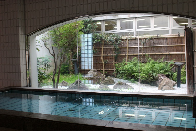 浴槽から見える中庭は当クラブ内では珍しい和の雰囲気になっています。