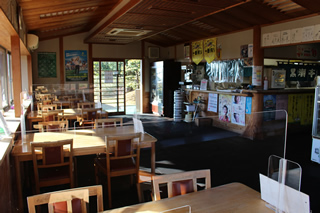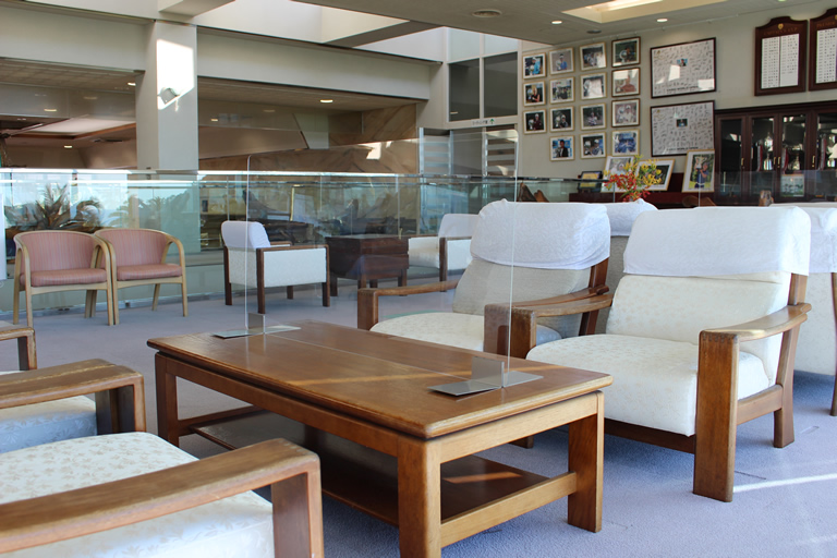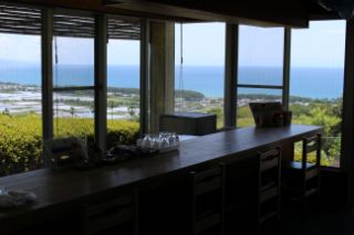 黒潮亭ではお飲み物、軽食をご用意しております。各コースの茶店はそれぞれ特徴があります。黒潮コースは前後半、同じ茶店をご利用いただくレイアウト。暖流コースは樹木の中で落ち着いた佇まい。太平洋コースは地球が丸いことを実感させる水平線の絶景。