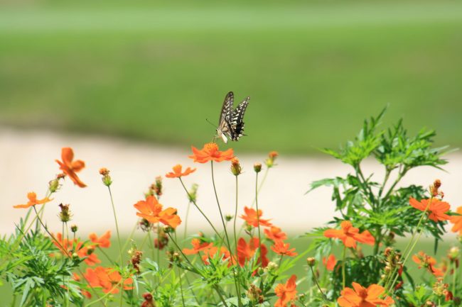 ちょうどアゲハ蝶さんがお花と戯れていました😍
