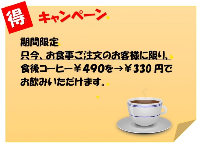 ①食後のゆったり時間にアフターコーヒーを¥330で🤩
