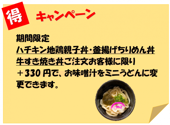 ②ちょっと満腹感プラスに丼のお味噌汁をミニうどんに😆