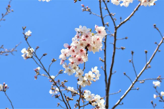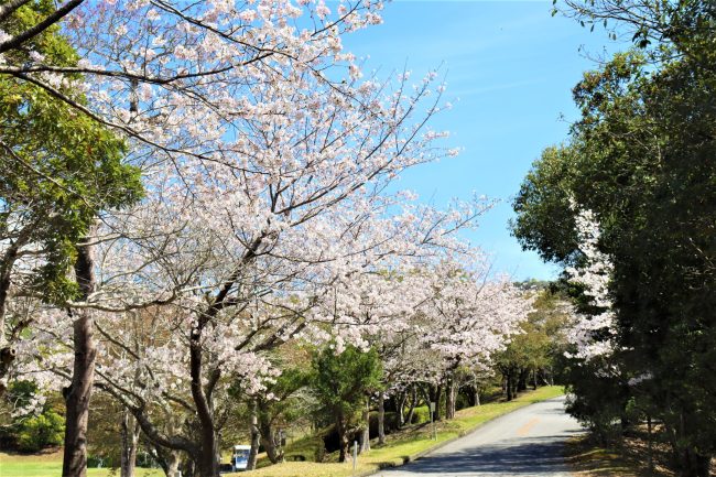 コースには早咲きなどたくさんの種類の桜があり