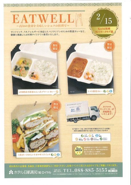 昨日、2月15日に当クラブにホテル日航高知旭ロイヤルのキッチンカーが来てくれました。