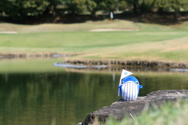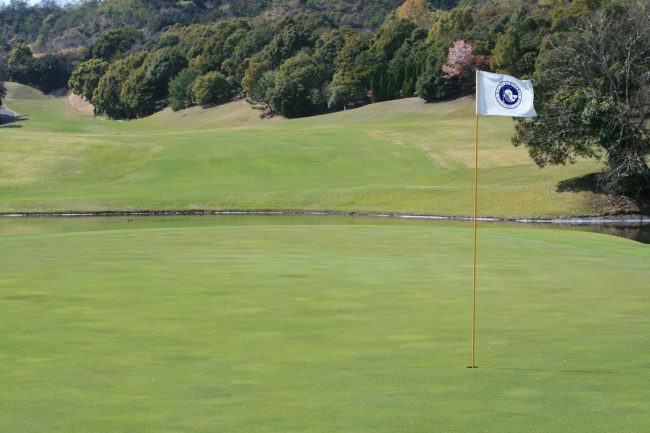 グリーン手前の池、グリーンを囲む樹木が美しいホール😍