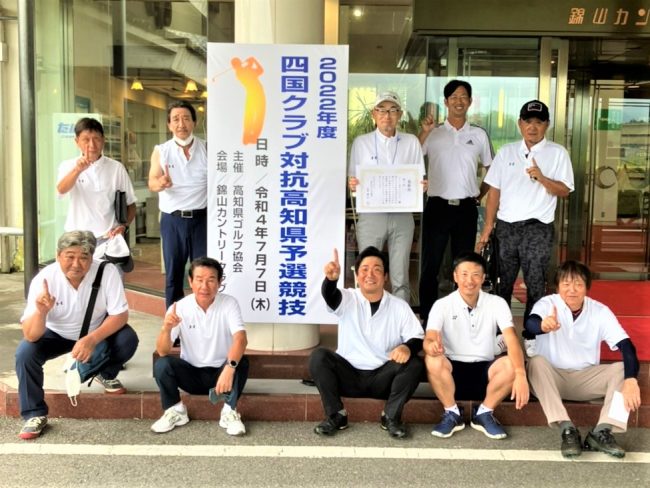 こんにちは😃 🐋吼え~るクジラです。先日、錦山カントリークラブで行われました2022年度四国クラブ対抗高知県予選競技においてKochi黒潮カントリークラブ✨1位通過を果たしました😆(後列左から)中越選手、小笠原選手、田中キャプテン、八木支……
