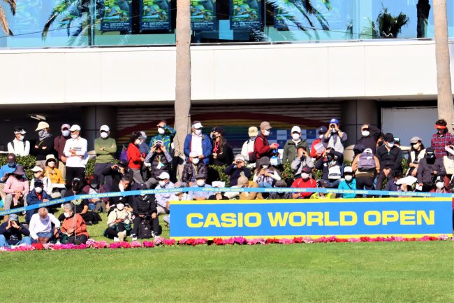 こんにちは😃 🐳かんくろうです。2022 CASIO WORLD OPEN 第2日少し風が吹いていますが寒さは感じません😊穏やかな気候😙たくさんのギャラリーの方がご来場🤗コース内で可愛らしいお友達が😍明日からは60位タイまでの選手で争う決……