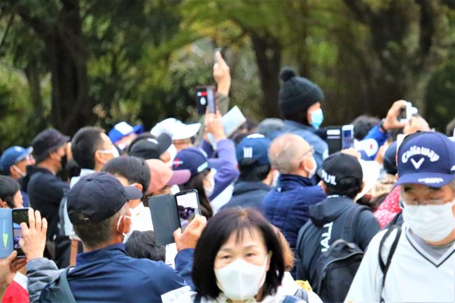 こんにちは😃 🐳かんくろうです。2022 CASIO WORLD OPEN 第3日小雨混じりの曇り空です😊たくさんのギャラリーの皆様にご来場いただきました😙早朝から練習場に人、人、人😍練習場では動画撮影OKです😊1番ティにも早くからご来場……