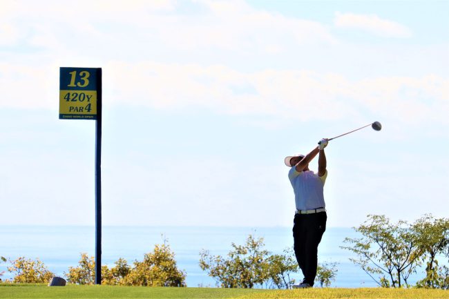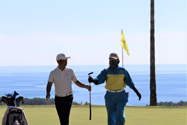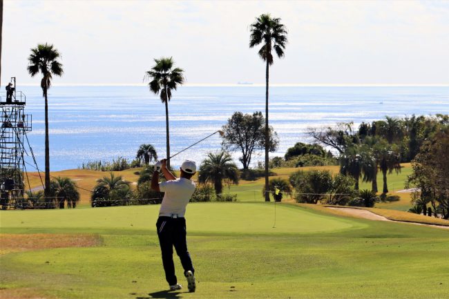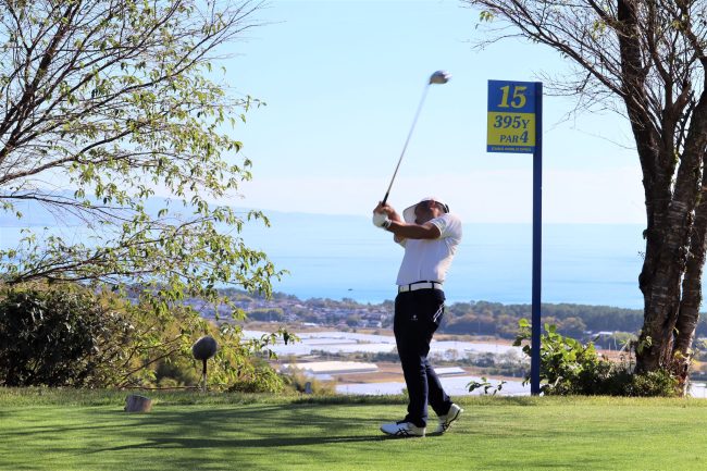 太平洋を背に豪快なドライバーショット😆